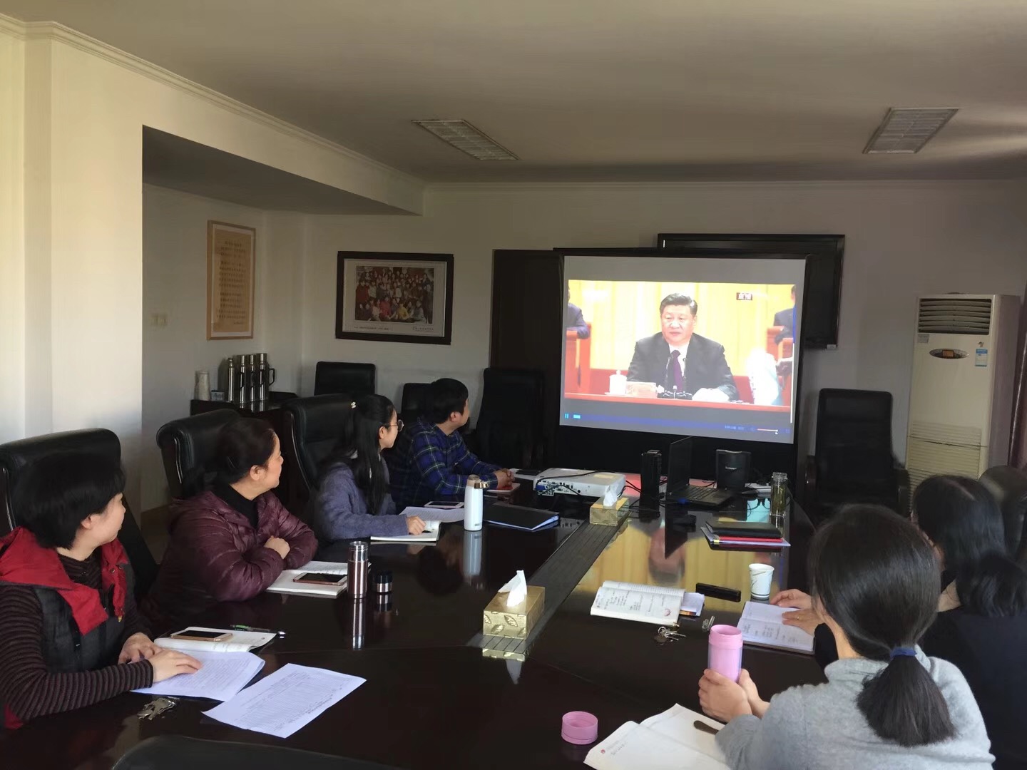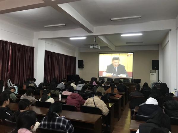 “40年春风化雨、春华秋实,改革开放极大改变了中国的面貌、中华民族的面貌、中国人民的面貌、中国共产党的面貌。”直播期间各党(总)支部师生党员认真聆听习近平总书记的报告,笔尖攒动记录着大会讲话要义。总书记的讲话深深打动了每一个干部群众,观看现场不时爆发热烈的掌声。