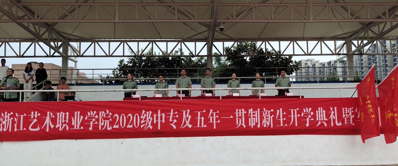 926日,浙艺2020级中专及五年一贯制新生开学典礼暨军训开训仪式在学校操场举行。校党委委员、副院长沈军甫出席,学工部负责人、各系书记、辅导员和班主任等参加。