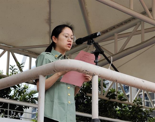 20模特与礼仪五年一贯制班余羚瑄作为学生代表发言,她希望在梦开始的地方,做遵规守纪的浙艺人,做有理想信念的浙艺人,做德艺兼修的浙艺人。在军训中,得到身体的锻炼、意志的磨炼、品德的培养,全面提升自我。
