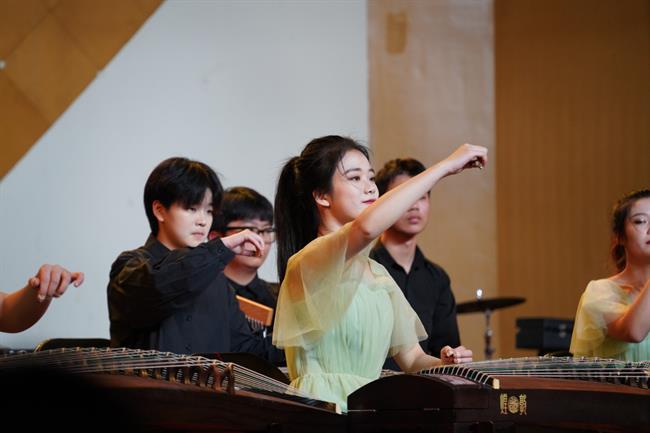 古筝重奏《绿色的风》用五声调式结合流行音乐赋予弹性的节奏,令听众沉醉于绿意盎然的春风里;阮族合奏《啰唻》曲调源于温州当地民谣《叮叮当》,以五声纵合化和声体系与传统和声体系相结合,勾勒出不同于西洋乐器的独特东方和声线条。