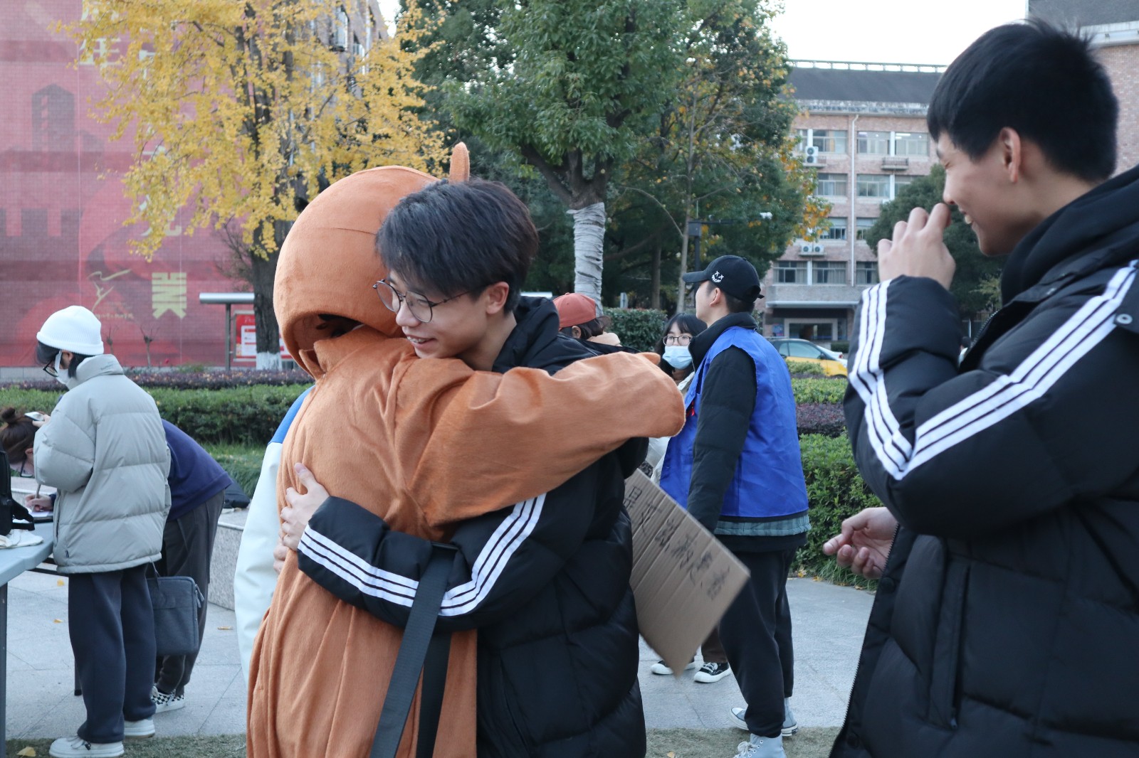 防艾知识宣传。12月1日起,校团委在学校中心广场设立防艾宣传点,向全校师生宣传防艾相关知识。身穿玩偶服的“艾滋病感染者”和大家互动拥抱,充分地让大家正视、尊重艾滋病感染者。往来的同学们更是在签名版上留下了自己对艾滋感染者的心语心愿。