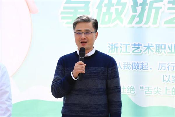 薛亮致辞。他表示,影视技术系寝室文化节活动自2017年举办至今已经陪伴影视学子们一同成长五载,期间文化节活动不断提质提量、推陈出新,为影视学子们搭建起学习与生活共融共建的成长天地。本次系部寝室文化节以“杜绝‘舌尖上的浪费’,争做浙艺‘光盘人’”为主题,为全校“立德树人‘十件小事’”的示范创建工作开好头、起好步。他提出希望,一要做“光盘”浙艺人,一米一粟当思来之不易,光盘行动要从浙艺学子自身做起、身体力行;二要做文明守护人,在践行文明的同时,要有主动引导、传播、引领厉行节约、反对浪费的美德新风尚;三要做全面发展的社会主义接班人,新时代青年不仅需要过硬的专业本领,健康的身体、高尚的情操、文明的举止、劳动的美德也是我们未来投身文艺行业,助力祖国发展必要条件,人人当传承中华美德,践行十件小事,争做全面发展的接班人。