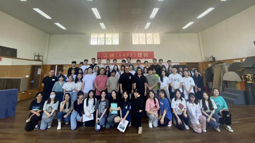 9月22日,话剧《1977》建组仪式在戏剧系5330教室举行。主创教师团队:导演那刚、舞美设计李昌国、灯光设计叶文志、台词指导施杳杳、人物造型设计王婧、服装设计巴蕾、多媒体影像设计程瀚、形体设计(舞蹈编导)李毅源、音乐音效设计江腾皓、海报说明书设计娄旻,和该剧的主要演员吉京京、白骏等悉数到场。2017级戏剧影视表演一贯制班、2020级表演专升本班、2019级舞台艺术设计与制作班全体学生参加。仪式由该剧执行导演、戏剧系青年教师王皆慧主持。