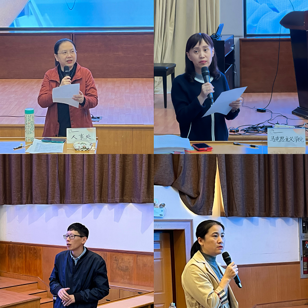 人事处副处长 戴闵青(左上)、马克思主义学院副院长 胡卓群(右上)