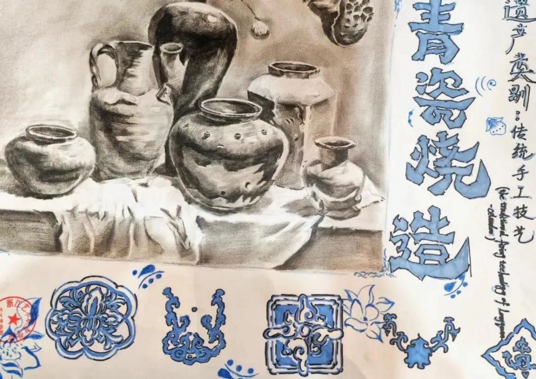 造型基础考核基于青瓷烧造、传统印染、水印木刻版画、篆刻四个专业模块的技艺特点拟定主题,通过“第二课堂”的实践形式开展,目的是考察学生的造型基础能力,提高设计美学基础素养。造型基础评分围绕作品艺术美感、创新性、综合性三方面,由民传教研室组织展开。综合理论和实践两方面成绩,本次专业基本功测试共评出优良作品17件,合格作品24件。
