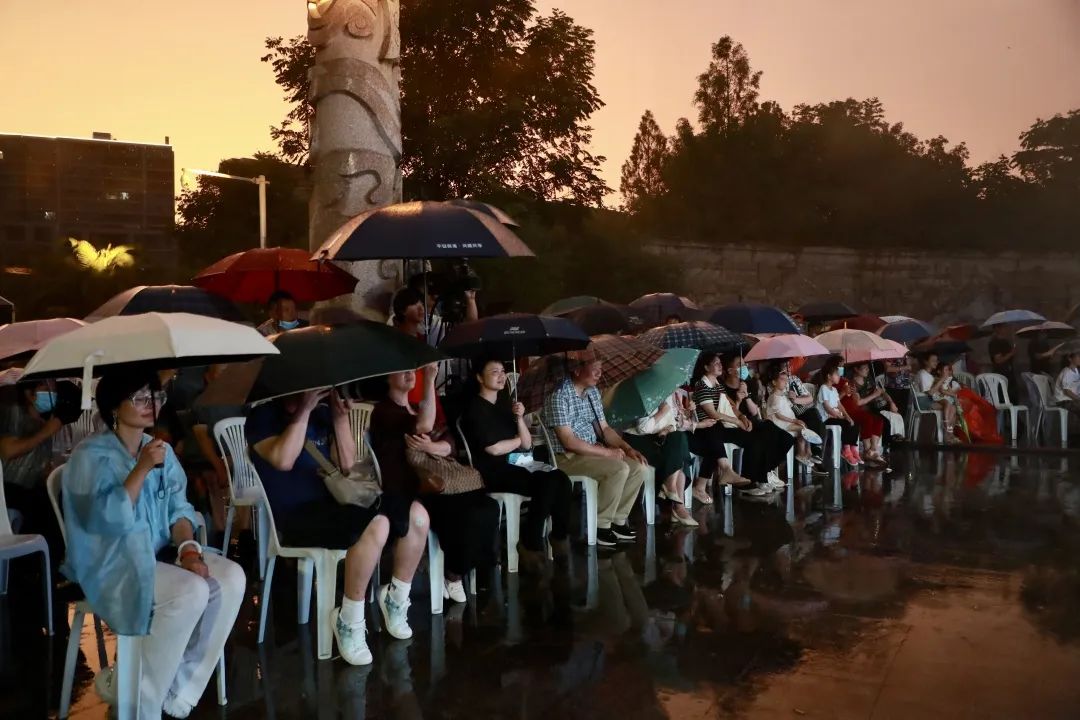 瓢泼大雨洒在同学们的身上、脸庞上,却浇不灭同学们心中的艺术之光,挡不住同学们对艺术的由衷热爱。师生们以实际行动给出了答案,是激情,是绽放,是越挫越勇!那一晚,台上,是倾情投入的演员,台下,是冒雨观看的观众。“这帮孩子很敬业、很优秀,在他们身上,我看到了活泼泼的生命力与凝聚力,特别感动!”撑着伞观看演出的观众们说。“尤其在这样天气下,他们的激情仍然点燃了整个舞台,让我们既感动又振奋!”