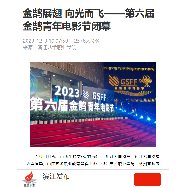 滨江发布:金鹄展翅 向光而飞——第六届金鹄青年电影节闭幕