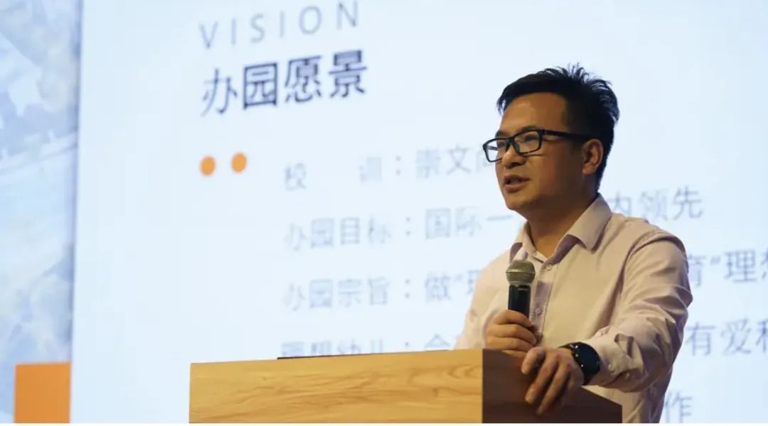 崇文教育集团学前部总园长周向鹏作题为《走向理想的理想国》的讲座。他介绍了“理想国”的名称的由来,解读了“崇文尚德”的校训,还分享了亲身的经历唤起同学们对于专业的热情与信念。
