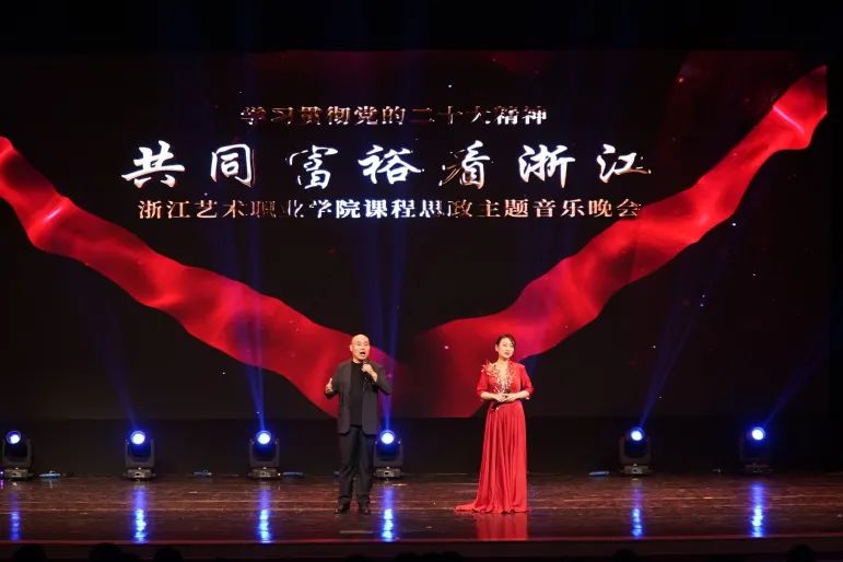 世界看东方,东方看中国,共同富裕中国看浙江。音乐会的最后,由2022级学生周俐彤演唱的《共同富裕看浙江》,将音乐会的演出推向又一个高潮。她的演唱温婉大气,激情歌颂了浙江作为高质量发展建设共同富裕示范区,正在共同富裕的道路上迈出坚实的步伐,那是“诗画江南”山水相依的水墨画卷,那是“活力浙江”奔涌不息的时代脉搏。
