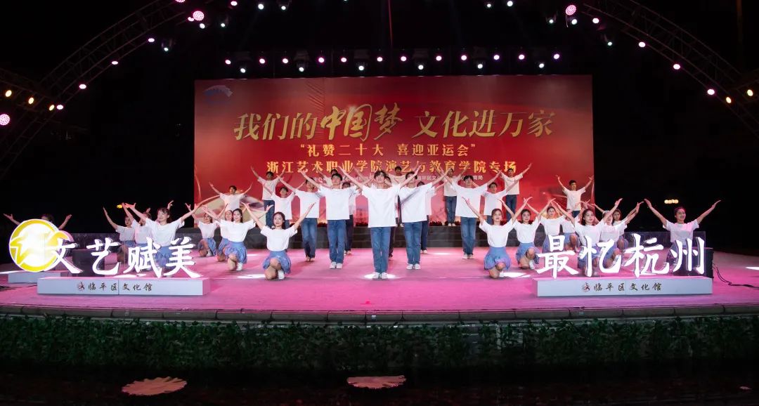 集体舞《等你来》是亚运会志愿者主题曲,表达了艺术学子为亚运会贡献一份青春力量的心愿。演出现场高潮迭起、喝彩不断,同学们以精彩表现赢得了观众们的赞扬与认可。