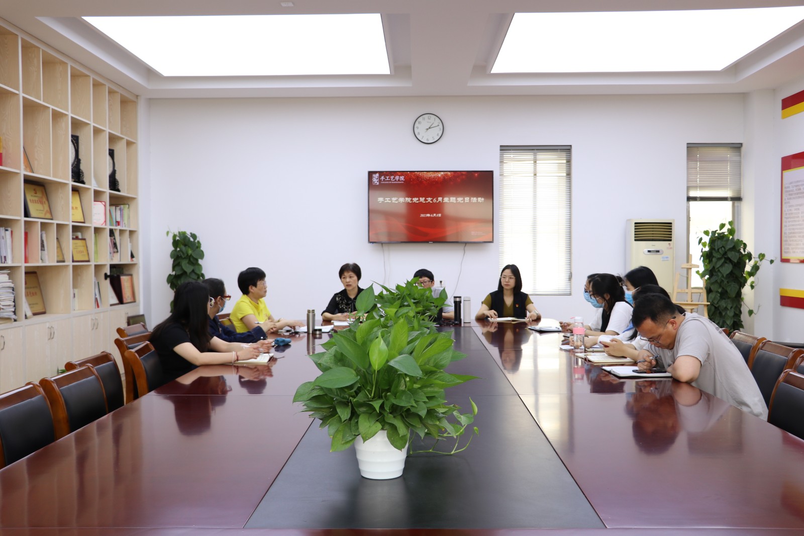 6月8日,手工艺学院开展6月主题党日活动暨理论学习中心组学习。全体党员教师及理论学习中心组成员参会,会议由党总支书记、副院长金银琴主持。