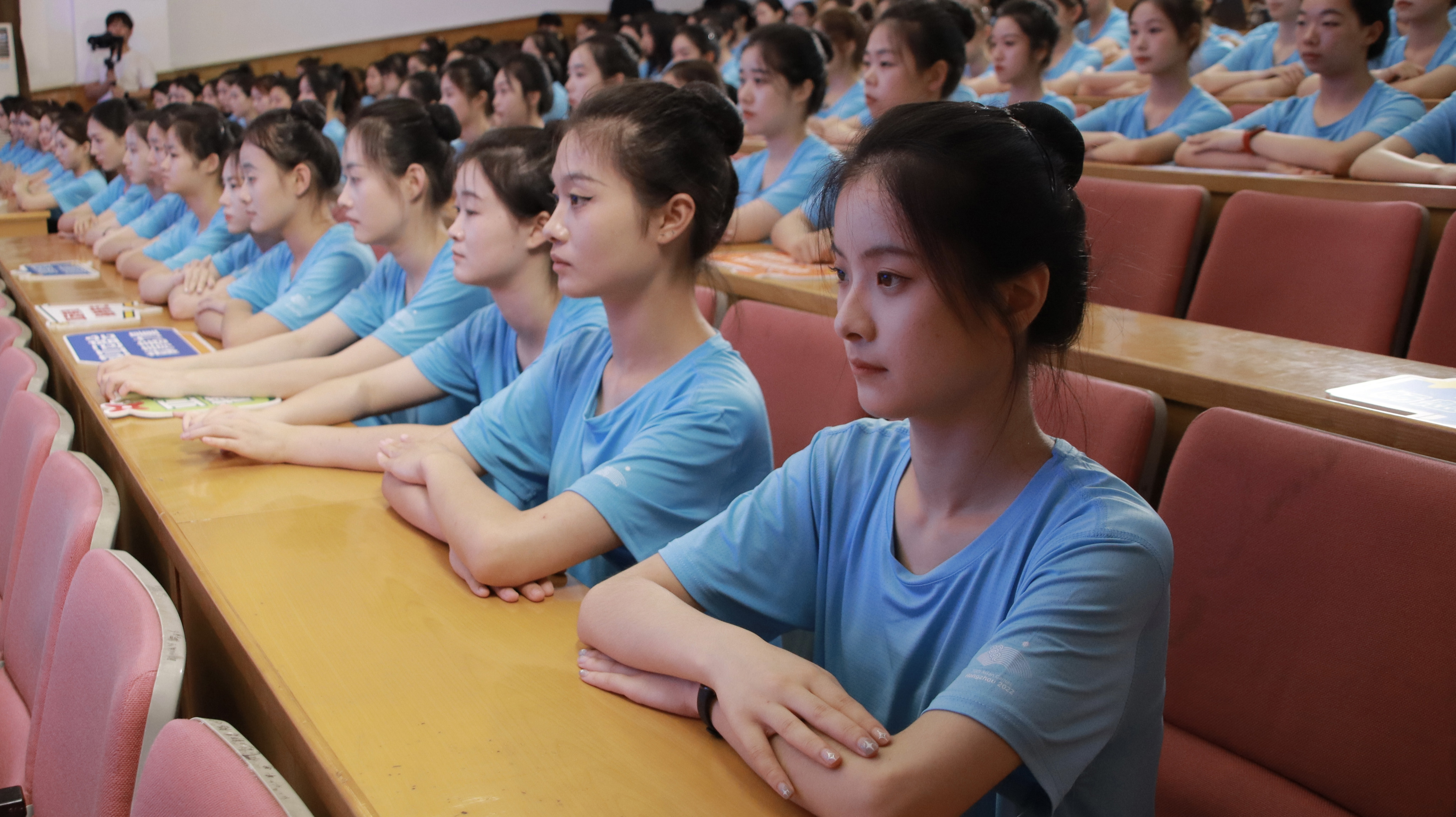 全体亚运会群演誓师宣誓:服务亚运,奋斗有我。助力梦想,青春闪耀。让我们以青春之力,为浙艺争光,为亚运添彩。