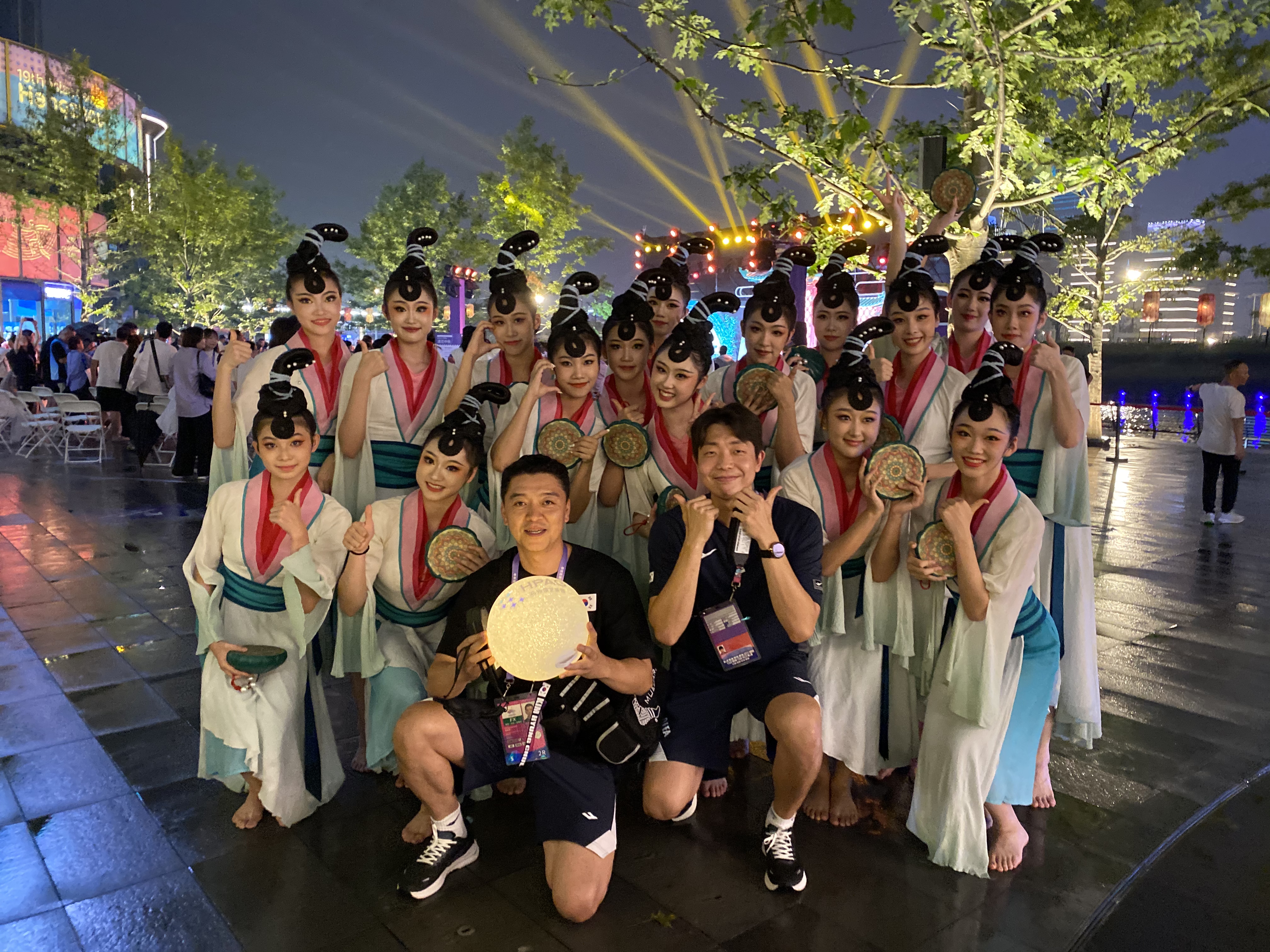 秋风拂面,丹桂飘香。整场晚会时而欢快喜悦,时而婉转悠扬,传达出中国传统文化的厚重与温度,营造了独属于杭州的浪漫氛围。演出期间下起了淅沥小雨,但台上台下互动氛围热烈,外国友人纷纷和采莲女合影留念。