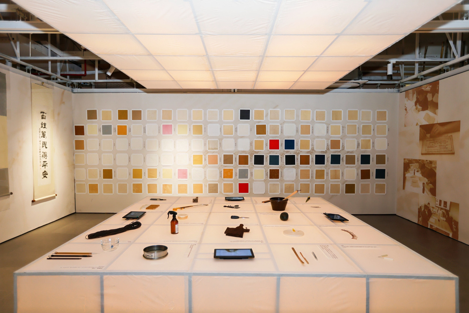 夏丹荷、李嘉玲、薛亮、施俊天和校党委委员、纪委书记沈军甫,党委委员、副院长刘秀峰,党委委员、宣传部、统战部部长傅文钢,党委委员、组织部部长、人才办主任周应中,手工艺学院党总支书记钟黎共同为“艺起传承——手工艺学院文物修复与保护专业教学成果展”展览开幕剪彩。