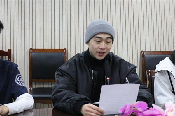22戏剧影视表演1班团支部孙仁东作为高职新团员代表发言,他表示,“我们入了团,并不意味着我们追求的结束,而是我们在自己的人生道路上有了一个更高、更新的目标。在这里,我代表新团员向各位老师与同学保证,我们会时刻牢记自己是一名光荣的共青团员,是先进青年的代表,是身边同学的榜样。为此,我们应该努力争做一名合格的、优秀的共青团员。希望老师们和广大同学们能够监督我们,让我们成为更优秀的团员。