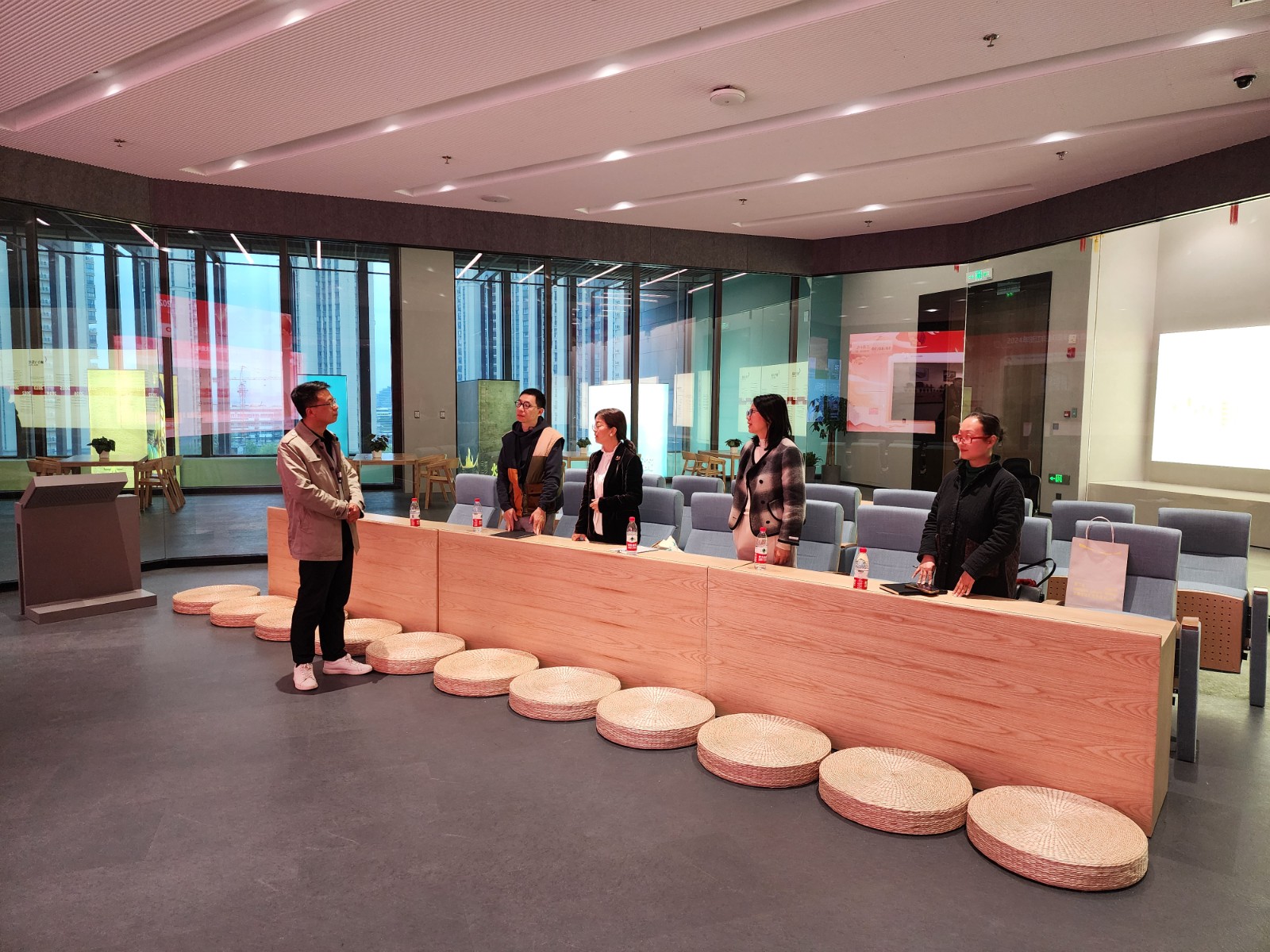 省非遗保护中心(馆)综合办公室副主任郑为贵陪同调研,详细介绍了场馆总体情况、楼层分布和浙江非遗数字大脑。